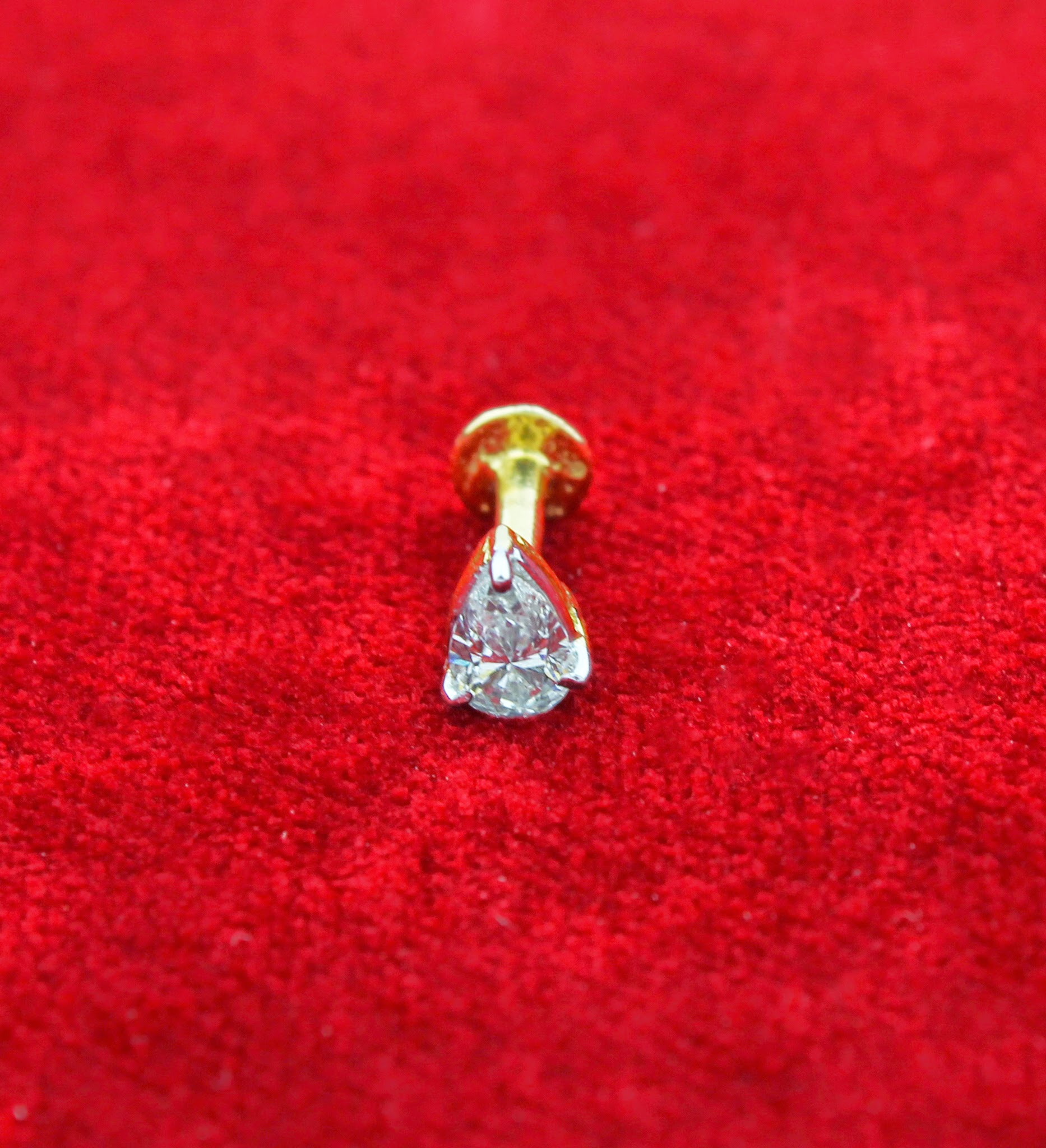 Pieces: 1Metal Purity:18 Kt Yellow GoldGross Weight (Gms): 0.47Weight (Gms)NET: 0.46Stone: DiamondsStone Shapes:MarquiseDiamond Weight: 0.32