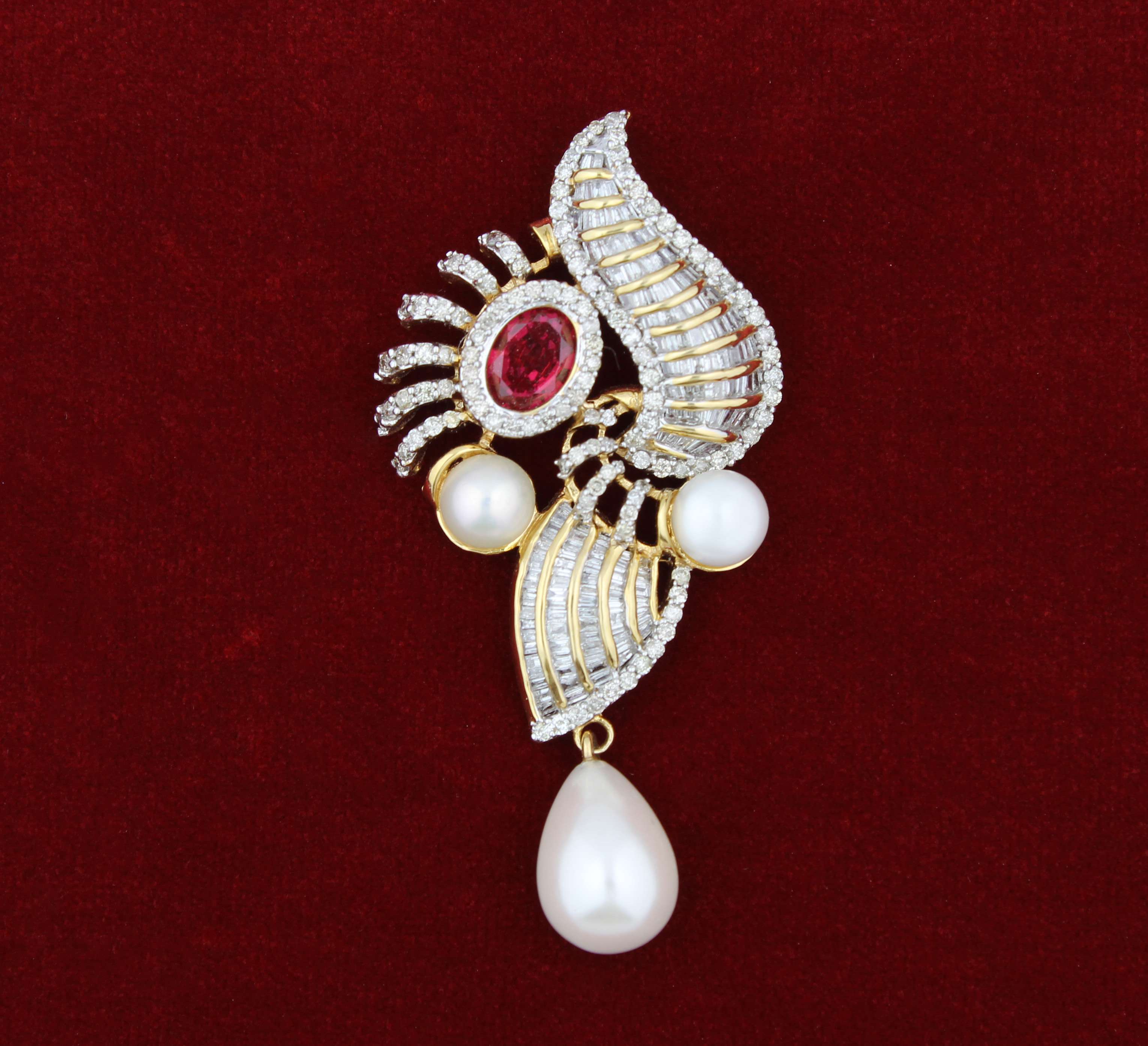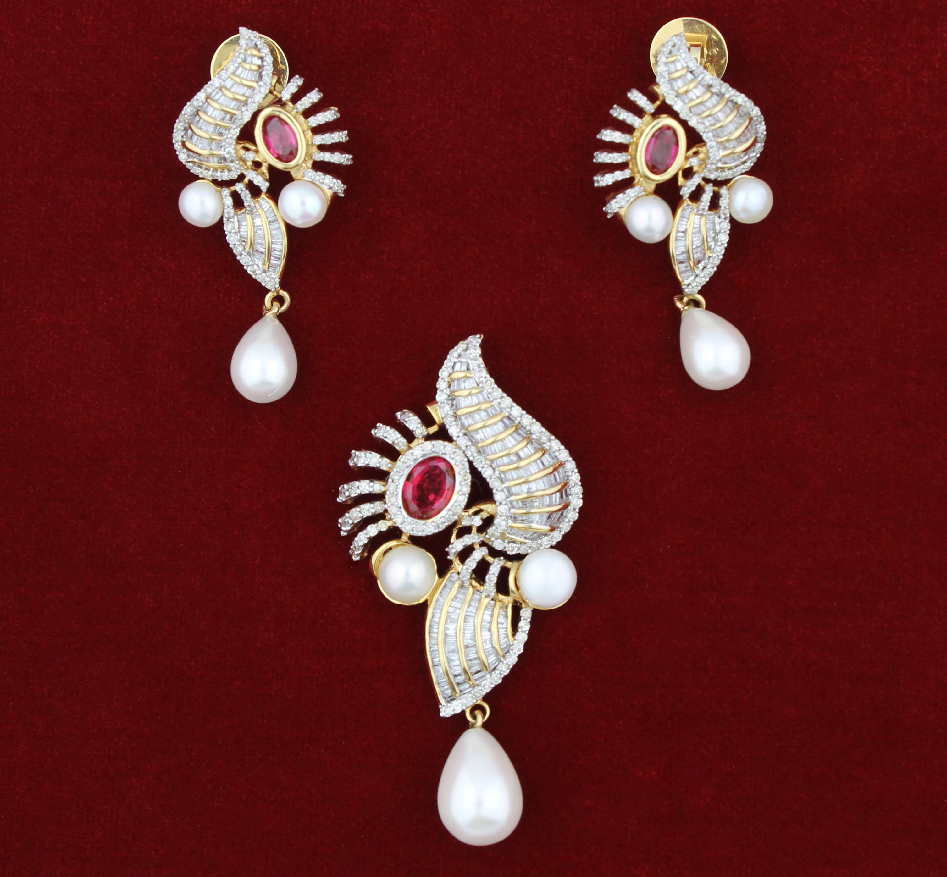 Diamond Pendent set with Ruby and Pearl